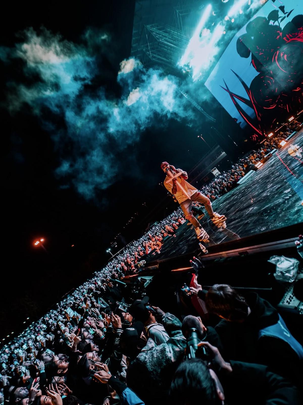 El discurso del concierto no titubeó. Con “Medusa” — tema que en su día compartió con figuras como J Balvin o Farruko — y luego “Amanece”, “Más Rica que Ayer” y “Pacto”, Anuel trazó un puente entre el origen urbano y el presente de estadio. Su voz rasgada, potente, resonaba sobre las luces, y el público respondía como una sola masa.