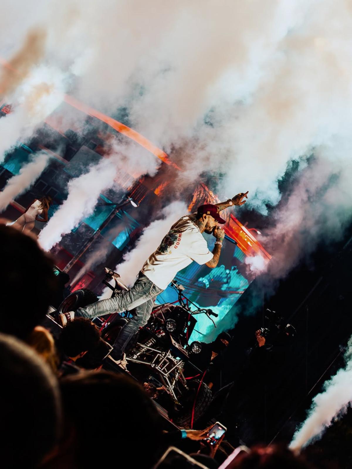 “Castillo”, “Culpables” (donde las bailarinas reaparecieron), “Me Contagié” — acortada, pero con potencia — recuperaron el ritmo, la calle, el barrio. Al sonar “Delincuente”, un quad decorado con la serigrafía de “Real Hasta la Muerte” irrumpió en escena. La estética urbana se mezcló con lo circense; el trap se transformó en espectáculo visual.